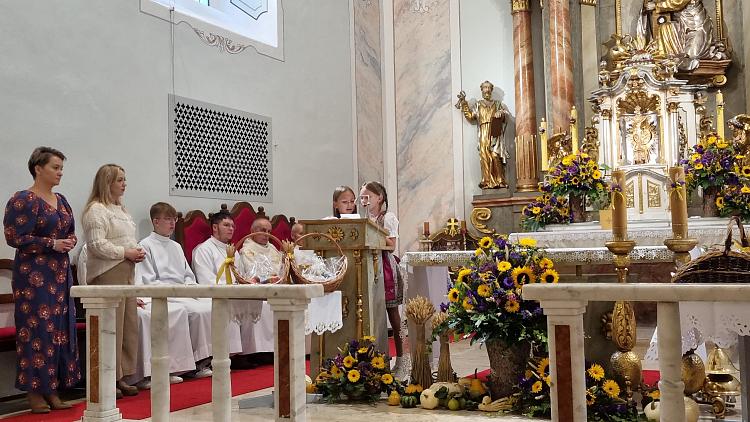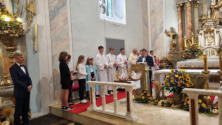 Tegoroczna niedziela dożynkowa przypadła w naszej parafii w Uroczystość Podwyższenia Krzyża Świętego. Dekoracje, koronę dożynkową i całą oprawę liturgiczną przygotowali mieszkańcy Dziedzic. Liturgię ubogacił też nasz chór i orkiestra. Dziękujemy wszystkim za zaangażowanie, bo pomaga ono piękniej wyrazić naszą wdzięczność Panu Bogu za plony ziemi.