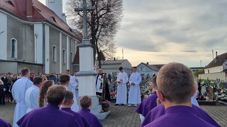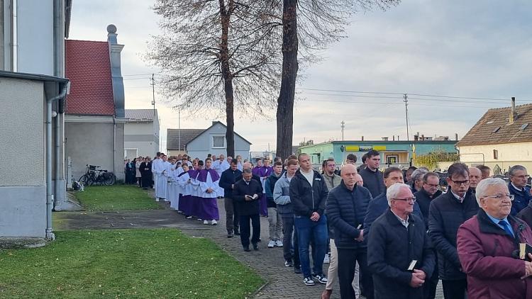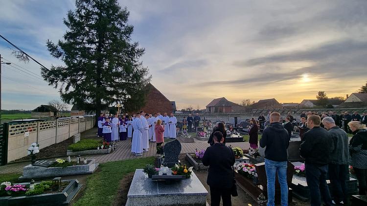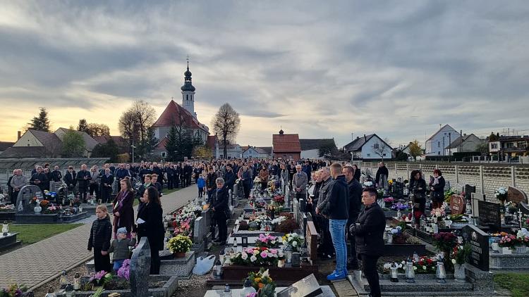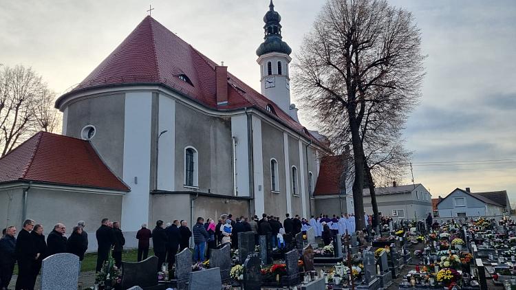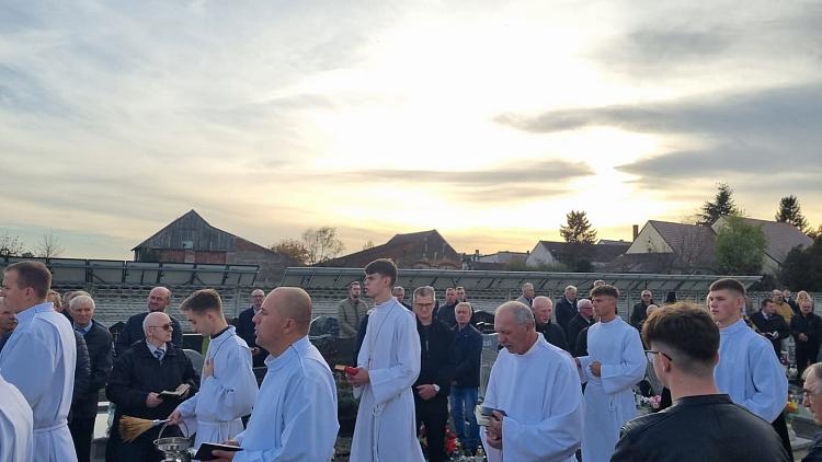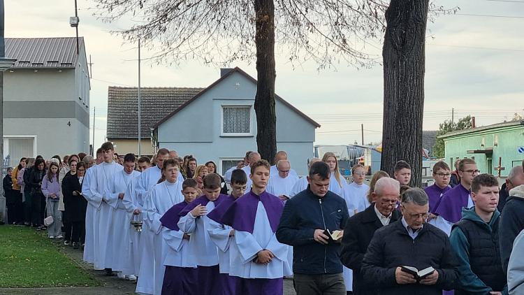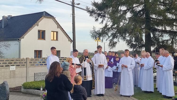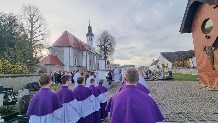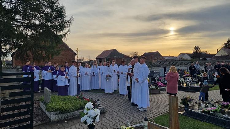 Tegoroczne popołudniowe nabożeństwo za zmarłych w Uroczystość Wszystkich Świętych zgromadziło bardzo wielu wiernych. Pierwsza część - nieszpory - odbyło się w kościele. Na koniec kazania Ks. Proboszcz odczytał tych zmarłych, którzy odeszli z naszej wspólnoty parafialnej w minionym roku. Następnie w modlitewnym skupieniu ruszyliśmy w procesji na cmentarz, gdzie przy poszczególnych stacjach powierzaliśmy Bogu naszych przodków. Przy pięknej pogodzie zakończyliśmy modlitwę na cmentarzu, a potem każdy w zadumie zatrzymywał się prz miejscach spoczynku swoich bliskich.