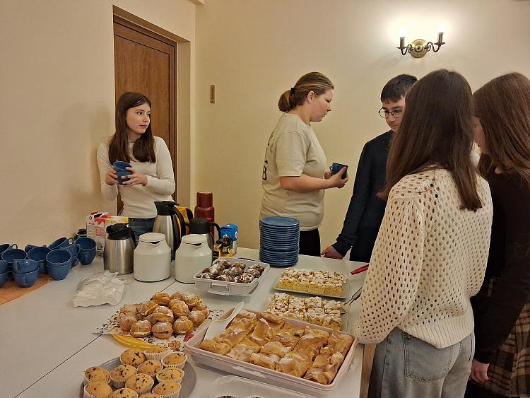 Nasi najstarsi kandydaci do bierzmowania z kl. VIII zorganizowali w parafialnym domu Św. Rodziny niedzielne spotkanie przy kawie. Przygotowali nie tylko poczęstunek, ale także postarali się o zorganizowanie muzycznego programu artystycznego, którym wszystkich zebranych, a zwłaszcza samotnych i seniorów, bardzo uradowali.