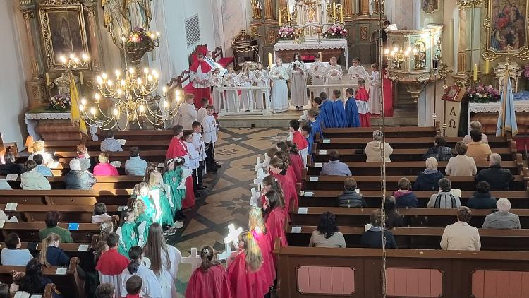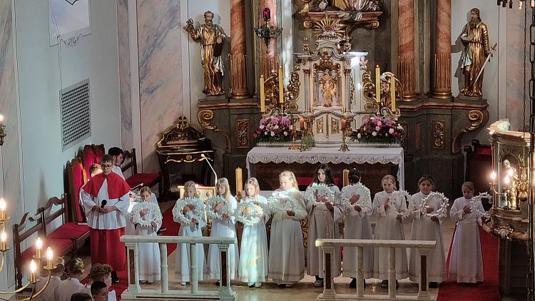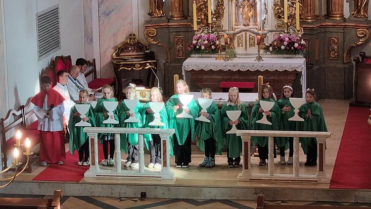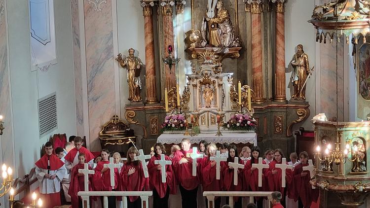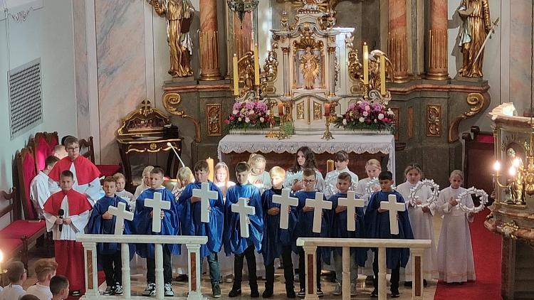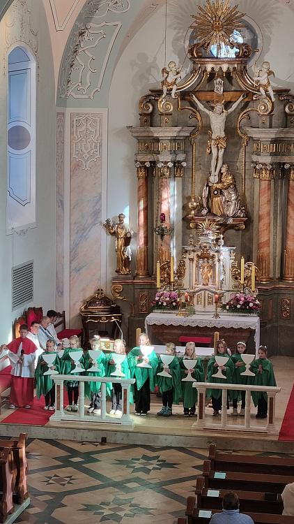 Tradycja "żywego różańca" w niedziele października w naszej parafii trwa już od ponad trzydziestu lat. I w tym roku dzięki zaangażowaniu wielu dzieci i ich rodziców udało się ją podtrzymać i w każdą niedzielę października dzieci przewodniczyły naszej modlitwie w kolorowych dziesiątkach i z symbolami tajemnic w rękach.