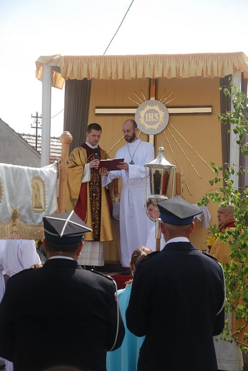 Tegoroczny temat roku duszpasterskiego "Wierzę w Kościół Chrystusowy" bardzo wyraźnie był obecny podczas uroczystości Bożego Ciała w naszej parafii. Wybrzmiał w przygotowanych pięknych ołtarzach, a widoczny był w żywej rozmodlonej i rozśpiewanej wspólnocie eucharystycznej, której w tym roku razem z Ks. Proboszczem przewodniczył nasz neoprezbiter - Ks. Patryk. Dzięki żywym członkom wspólnoty Chrystusowej w naszej procesji, która przeszła w tym roku kolejnymi innymi ulicami Racławiczek, znowu mogły być niesione lilie, poduszki, figury, sztandary i tajemnice różańca, a przed Najświętszym Sakramentem nie zabrakło najmłodszych wyścielających kwietną drogę Chrystusowi. Wszyscy wyznajemy w ten sposób wiarę, że "w Kościele tym jest z Ciałem i Krwią Bóg pod postacią chleba".