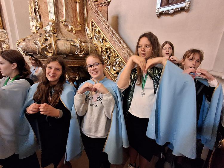 W ostatni weekend września grupa przedstawicielek naszych Marianek wraz z opiekunką uczestniczyły w dorocznej pielgrzymce na Górę św. Anny. Miała ona tym razem charakter jubileuszowy i odbywała sie pod hasłem "Matko nadziei - prowadź nas". W piątkowy wieczór, po Eucharystii, miałyśmy okazję obejrzeć przedstawienie o Carlo Acutisie. Sobota od samego rana miała charakter modlitewny, a jej kulminacyjnym punktem była Eucharystia pod przewodnictwem bpa Waldemara Musioła, który na koniec nagrodził wyróżnione Marianki. Z okazji Roku Jubileuszowego opiekunowie grup w parafiach otrzymali również pamiątkowe podziękowania. W sobotę też były warsztaty, na których dziewczyny robiły serca Maryi, a na koniec był pogodny wieczór pełen radości, muzyki, tańca i konkursów, w których nasze dziewczyny zaprezentowały się na wysokim poziomie. Pielgrzymka zakończyła się w niedzielę Eucharystią.