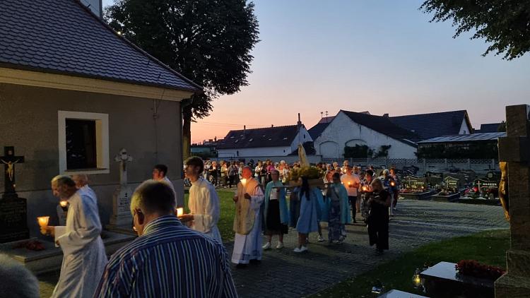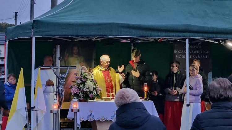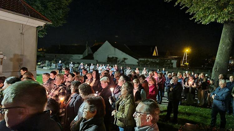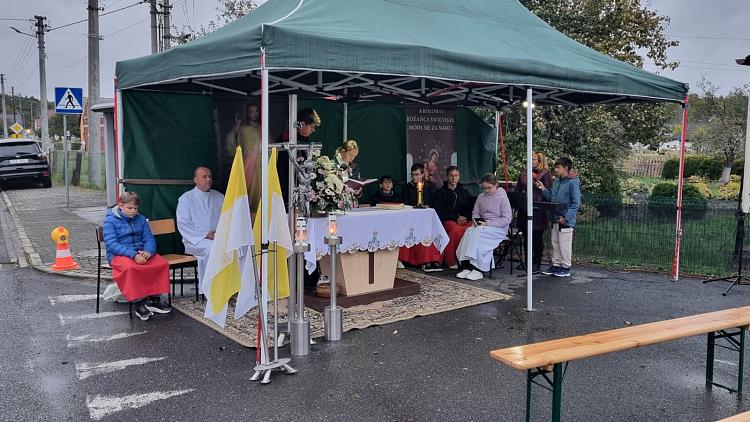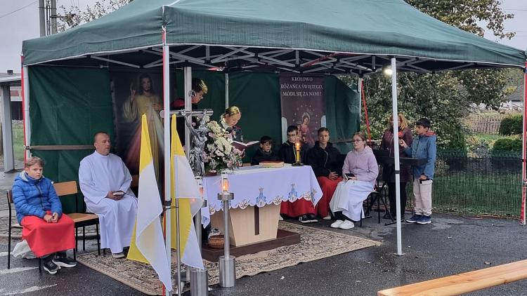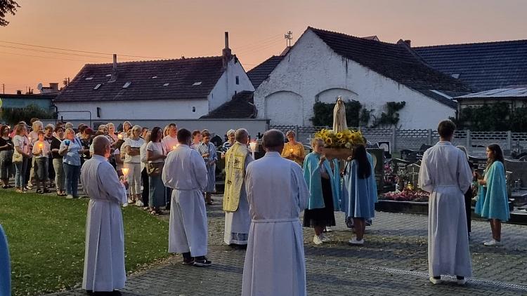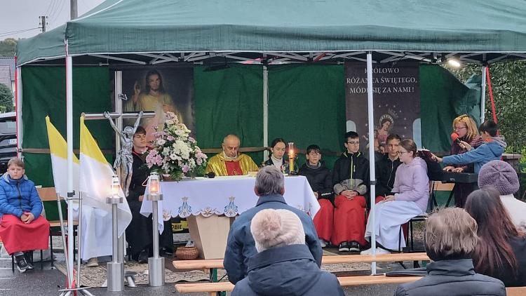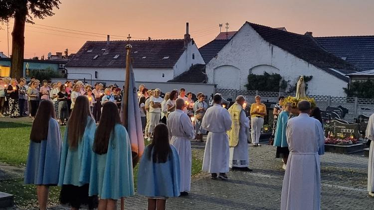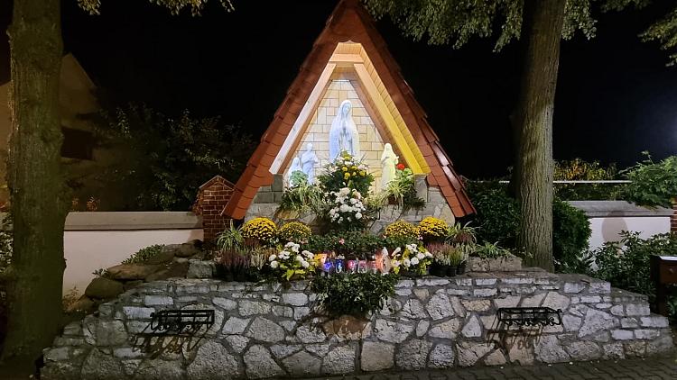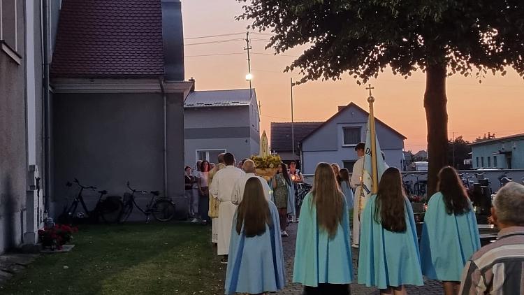 W poniedziałkowy wieczór zgromadziliśmy się na Mszy św., po której odmówiliśmy różaniec zakończony procesją do groty Matki Bożej Fatimskiej.