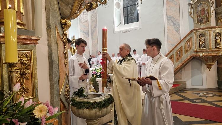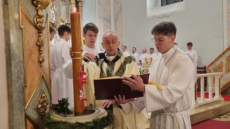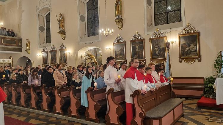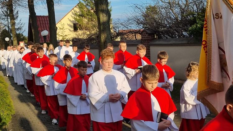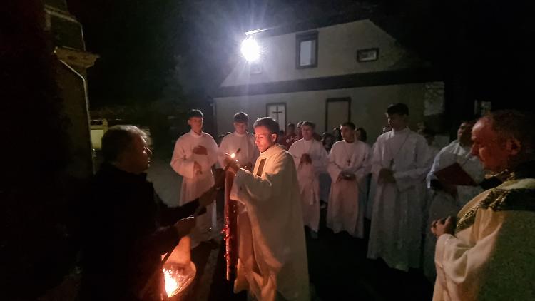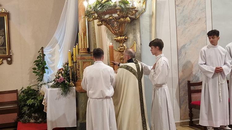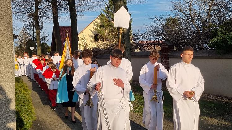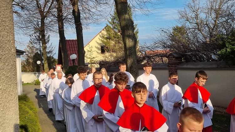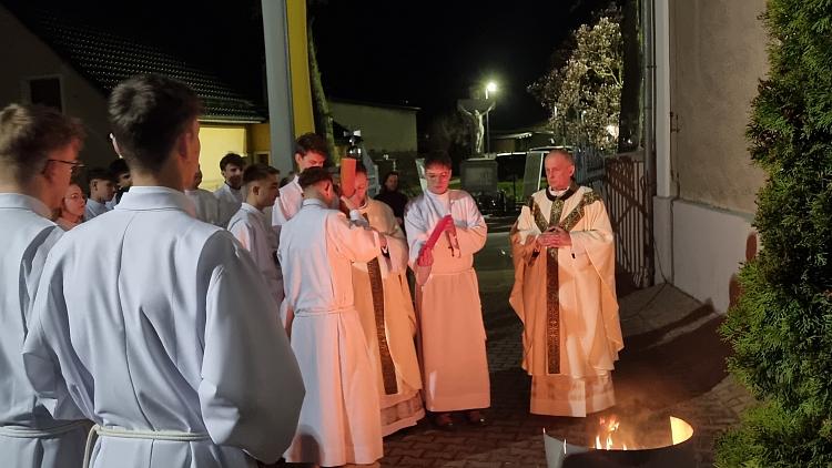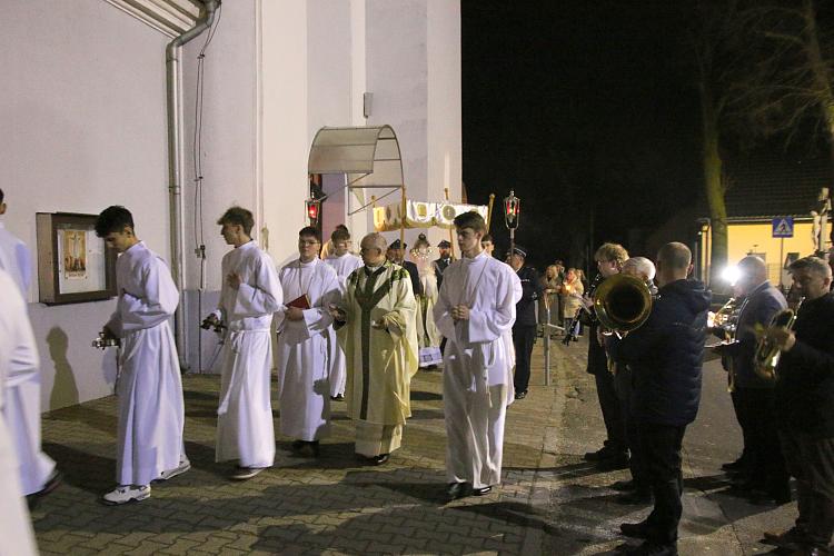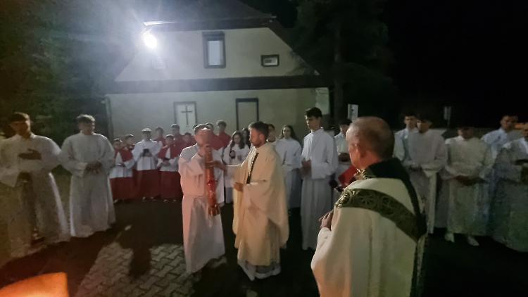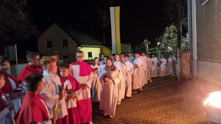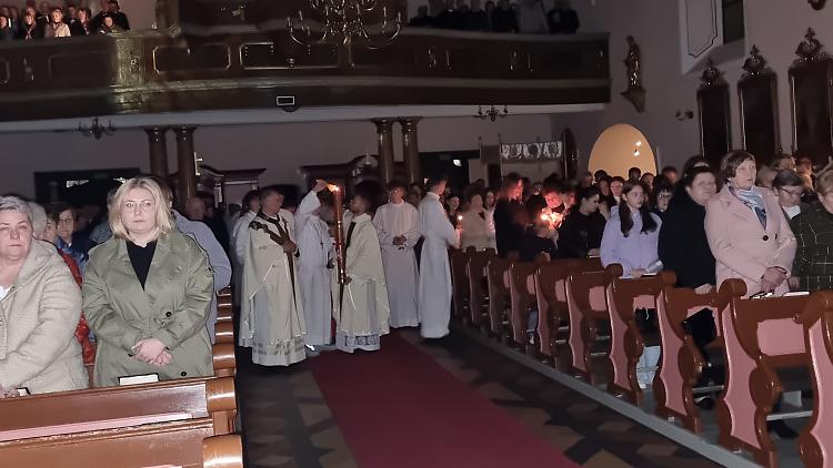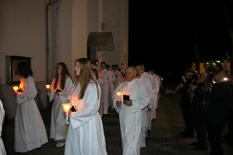 Tegoroczne obrzędy Wigilii Paschalnej rozpoczęliśmy o godz. 22.00. O północy procesją rezurekcyjną wokół kościoła ogłosiliśmy światu fakt zmartwychwstania Pana Jezusa.