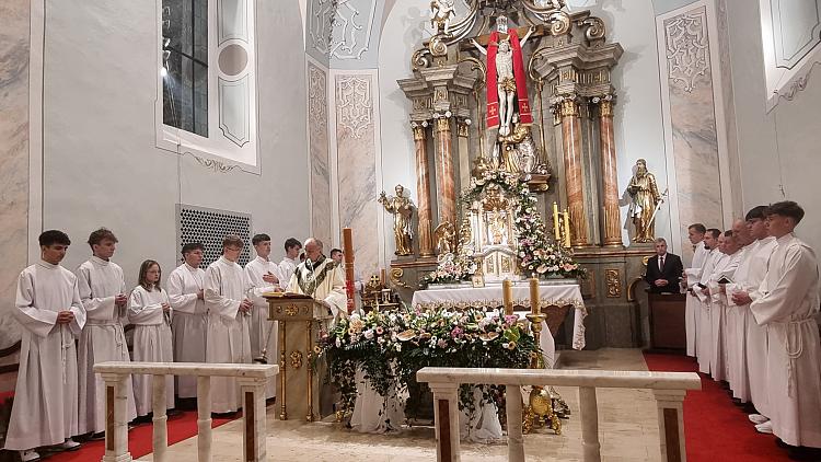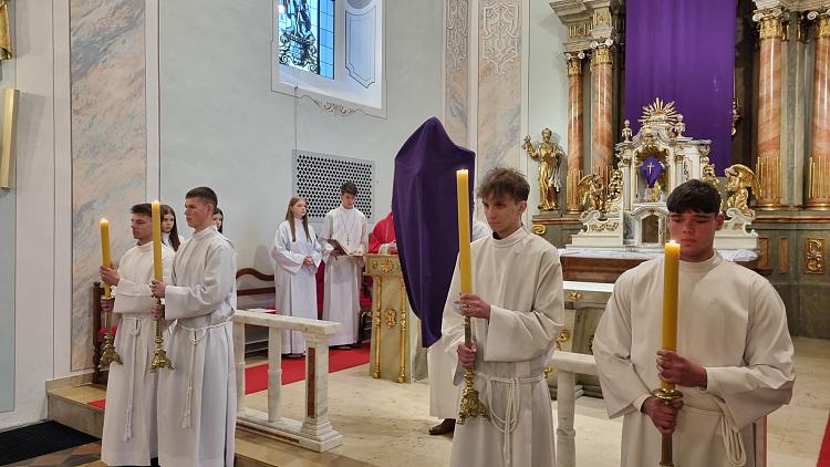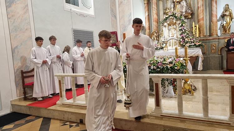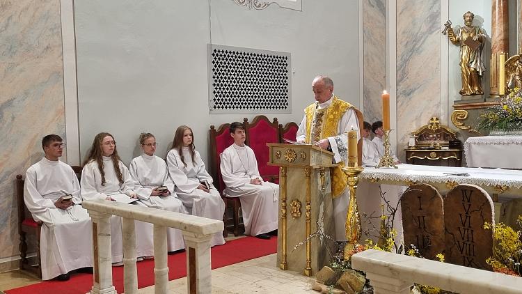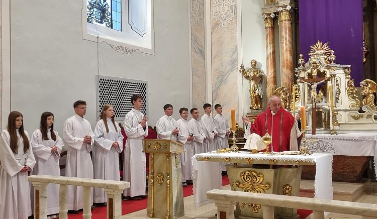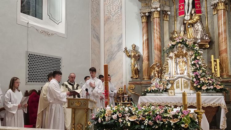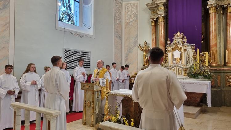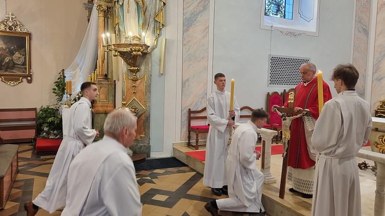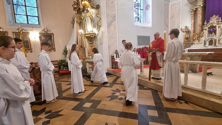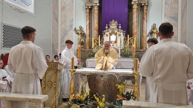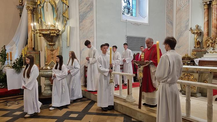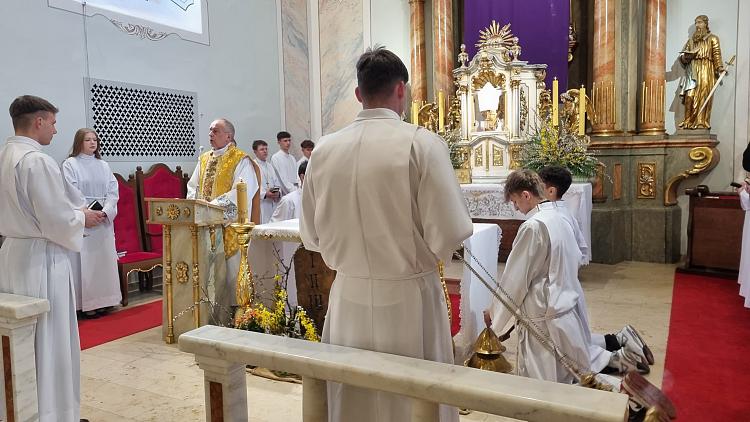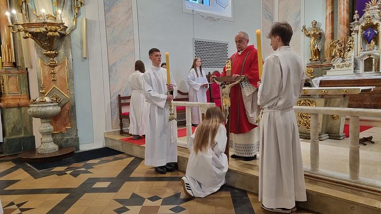 Obchody Triduum Paschalnego rozpoczęliśmy uroczystą Mszą Wieczerzy Pańskiej w czwartkowy wieczór. Do południa w katedrze sprawowana była Msza Krzyżma. Po jej zakończeniu Ks. Biskup Rudolf wręczył dyplomy wyróżnienia zasłużonym ministrantom, wśród których byli nasi chłopcy: Kamil, Dawid i Denis. Serdecznie im gratulujemy.