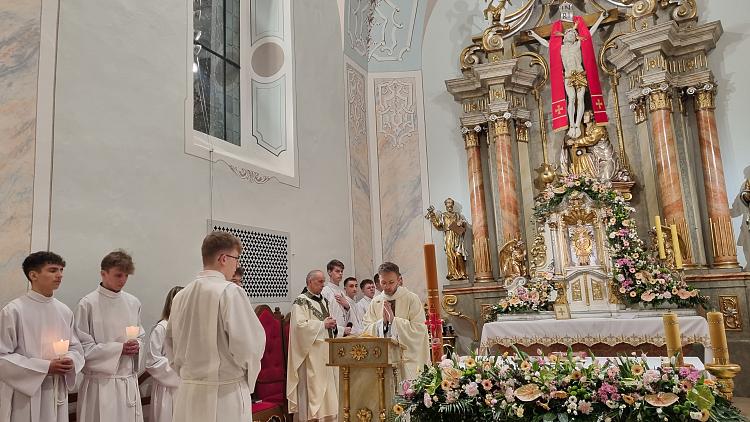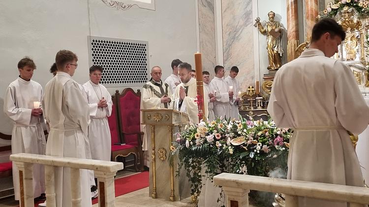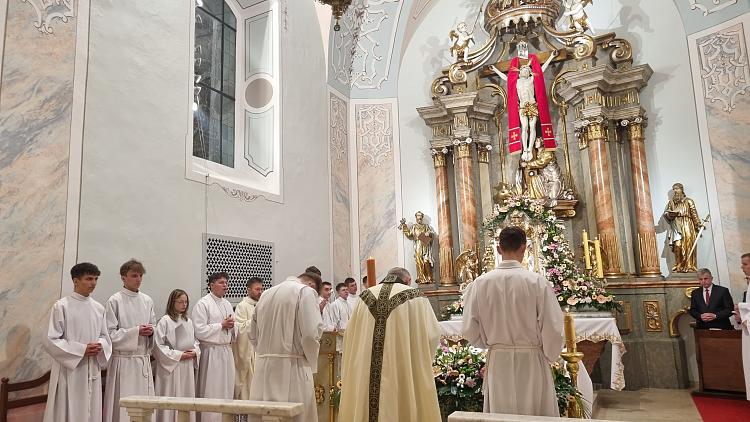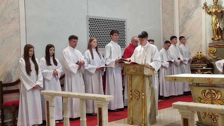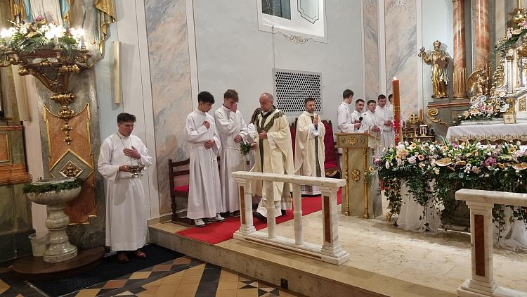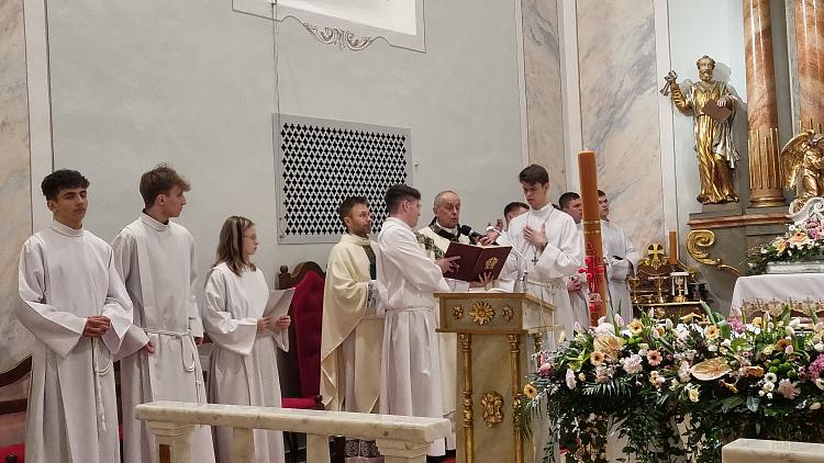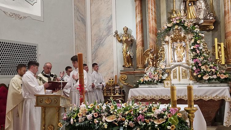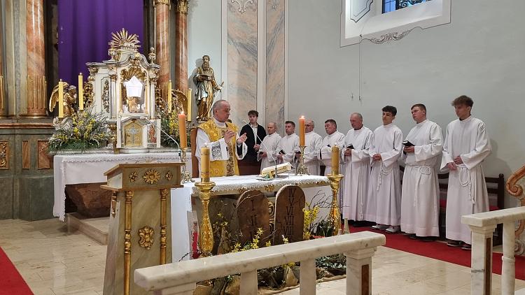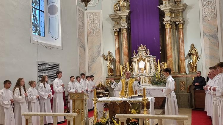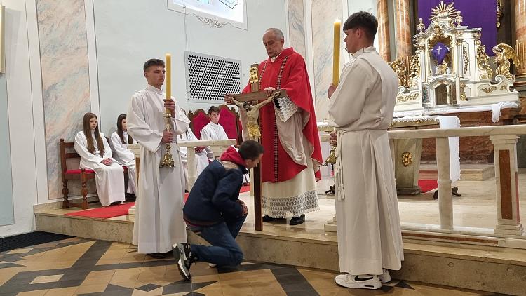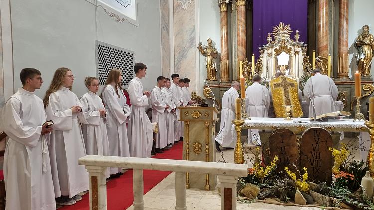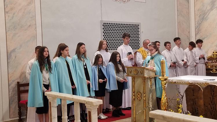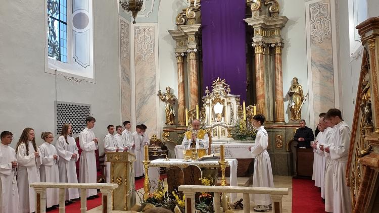 Obchody Triduum Paschalnego rozpoczęliśmy uroczystą Mszą Wieczerzy Pańskiej w czwartkowy wieczór. Do południa w katedrze sprawowana była Msza Krzyżma. Po jej zakończeniu Ks. Biskup Rudolf wręczył dyplomy wyróżnienia zasłużonym ministrantom, wśród których byli nasi chłopcy: Kamil, Dawid i Denis. Serdecznie im gratulujemy.