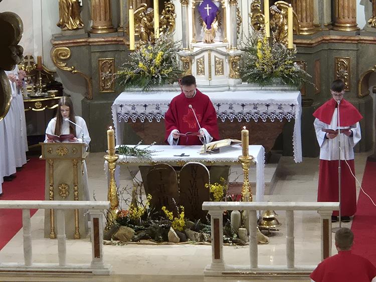 Niedziela - 8 marca - była drugim dniem wizytacji kanonicznej. Uroczysta Msza św. pod przewodnictwem Ks. Biskupa była poprzedzona modlitwą przy grobach kapłanów. Na początku Eucharystii przedstawicielka Parafialnej Rady Duszpasterskiej przedstawiła sprawozdanie gospodarcze od ostatniej wizytacji, a Ks. Proboszcz przedstawił sprawozdanie z pracy duszpasterskiej. Po Mszy św. w domu św. Rodziny było spotkanie z członkami Rady Parafialnej. Ks. Biskup przewodniczył też Gorzkim Żalom i wygłosił kazanie pasyjne. Na koniec odbyło się spotkanie z wszystkimi grupami, które funkcjonują w naszej parafii.